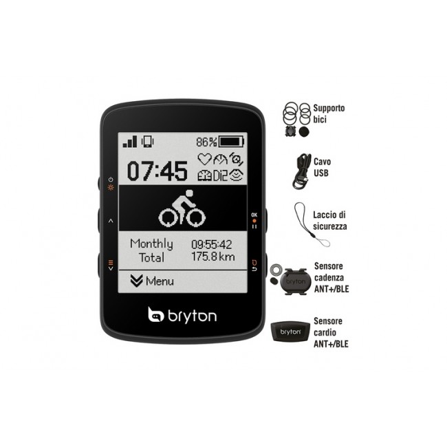 Pedala senza pensieri con Rider 460 Bryton Rider 460 è un ottimo ciclo computer per migliorare la tua esperienza ciclistica. L'ampio schermo in bianco e nero da 2,6 pollici offre una visibilità cristallina, mentre la nuova e migliorata GUI (interfaccia utente grafica) semplifica la visualizzazione e la comprensione dei dati ciclistici. Con una potente durata della batteria da 32 ore, puoi usufruire di un monitoraggio ininterrotto delle prestazioni. La nuova innovativa funzione Dettaglio di svolta garantisce una navigazione sicura, fornendo una chiara visualizzazione delle strade vicine agli incroci e mantenendoti esattamente sul percorso pianificato. La funzione Climb Challenge di Rider 460 viene inoltre visualizzata graficamente, consentendoti di affrontare più facilmente i tratti di ascesa durante il percorso. Nel complesso, Rider 460 è un dispositivo affidabile ed efficiente che semplifica e guida l'esperienza in sella alla tua bici, consentendoti di portare le tue avventure ciclistiche a un livello superiore.