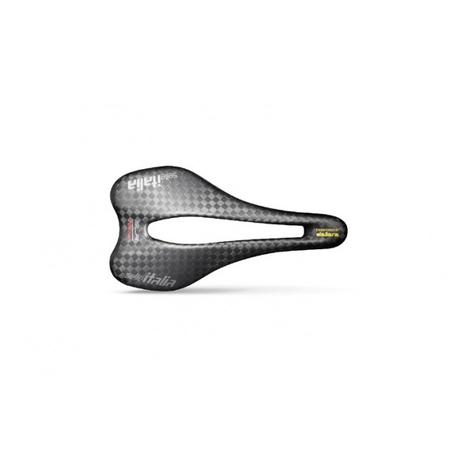 Una sella full-carbon da competizione pura: massima rigidità e peso minimo declinate con un design a "naso corto" che assicura stabilità anche nelle più estreme posizioni di seduta aerodinamica.
